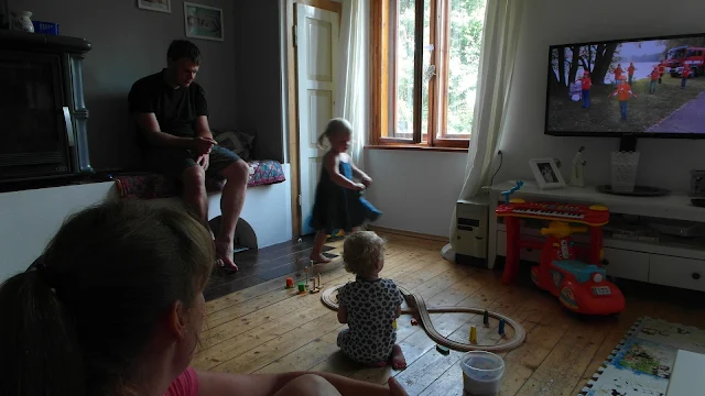 Včera měla Madlenka svátek,má teď mašinkové období,dostala koleje a vyhráli si všichni,Majda s Rozárkou,táta Honza i oba dědečkové :-))))