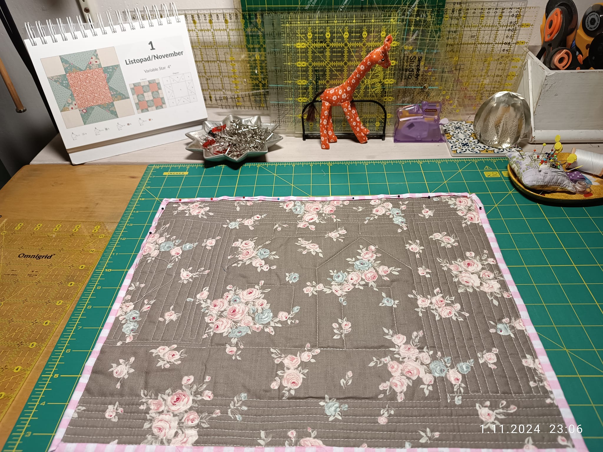 Odpoledne Tlapičky.Přišívala jsem lemovací proužek k prostírání pro bráchu.Ale vzala jsem si špatné nitě na ruční šití.kroutily se a trhaly,tak jsem s bídou ušila dvě strany...